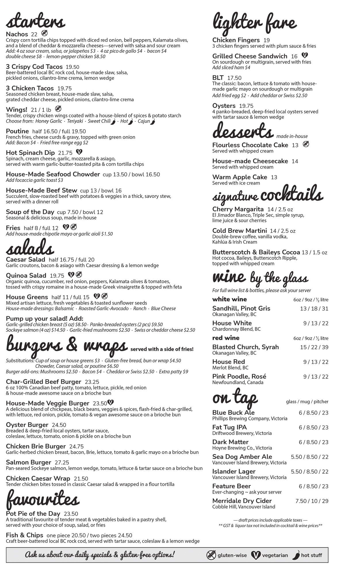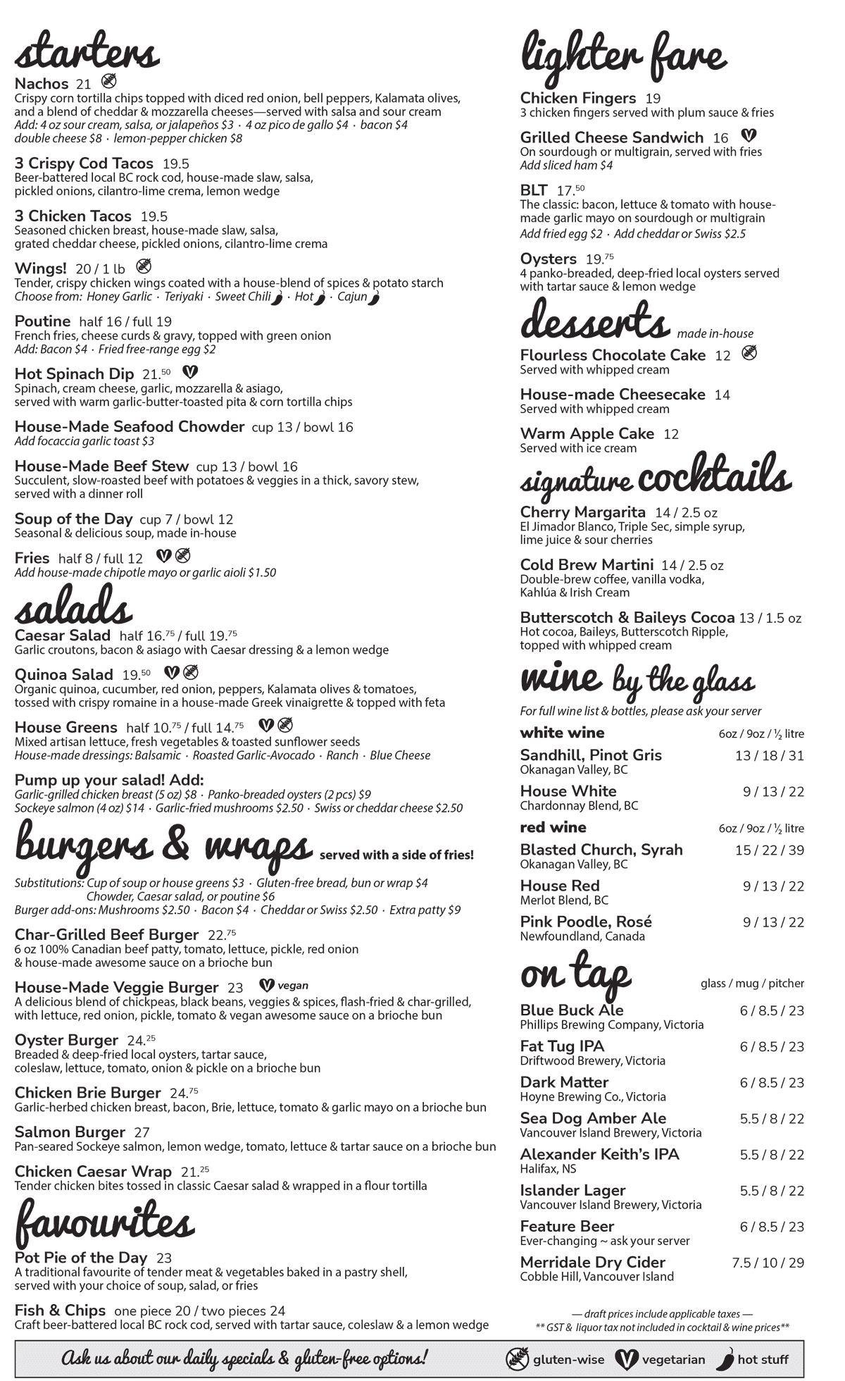 Care and attention to the food, and the customer, are to be expected when dining in Herons at the Heriot Bay Inn. Our chef creates tasty interpretations of coastal classics and modern cuisine, often with local ingredients.